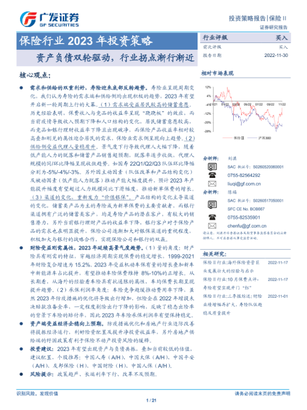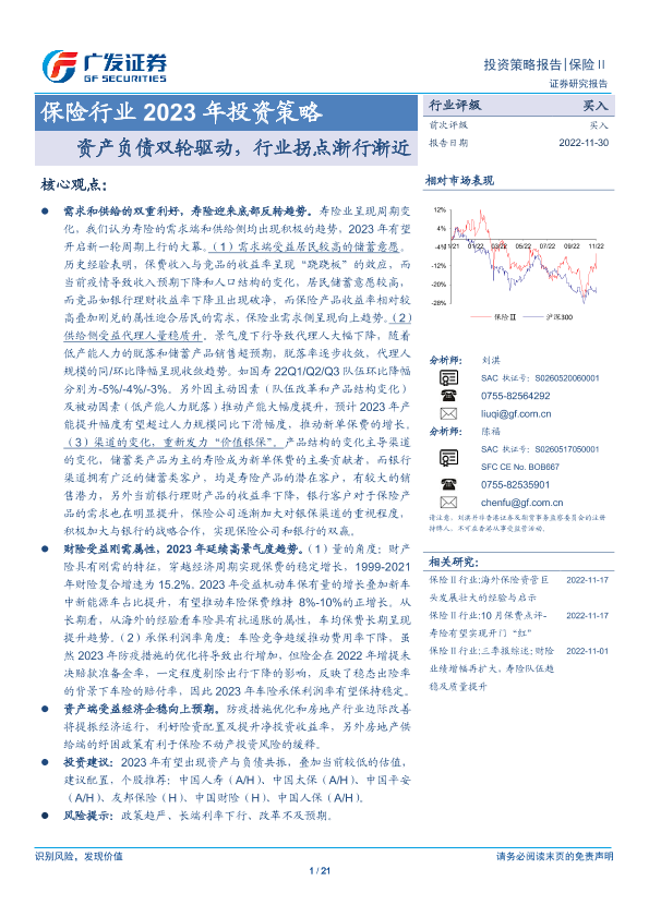 【广发证券】【20221130】保险行业2023年投资策略:资产负债双轮驱动,行业拐点渐行渐近-21页