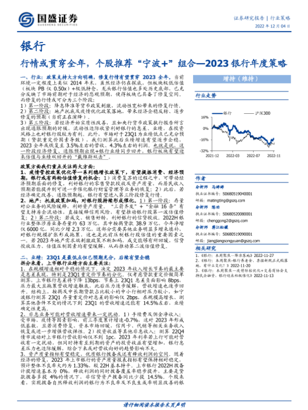 【国盛证券】【20221204】2023银行年度策略:行情或贯穿全年,个股推荐“宁波+”组合-35页