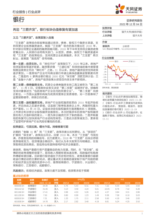 【天风证券】【20221204】银行行业点评:再迎“三箭齐发”,银行板块估值修复有望加速-11页