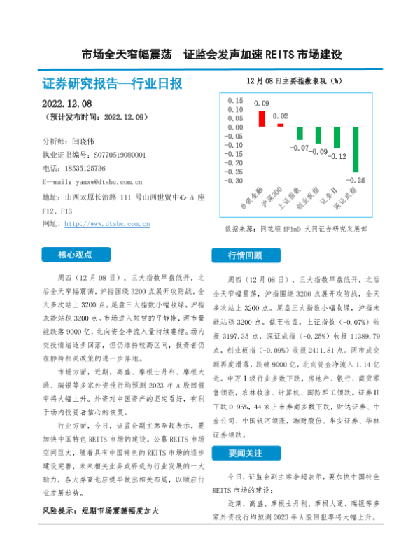 【大同证券】【20221208】非银金融行业日报:市场全天窄幅震荡,证监会发声加速REITS市场建设-10页