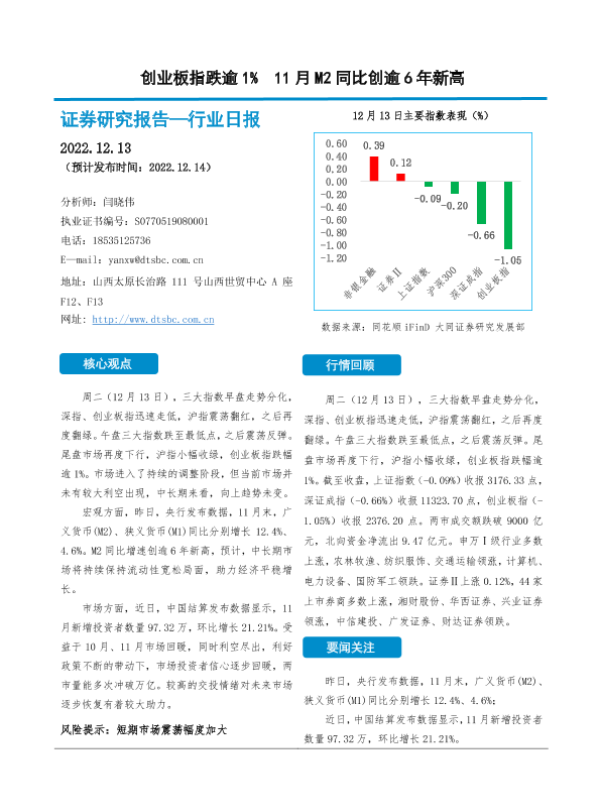【大同证券】【20221213】非银金融行业日报:创业板指跌逾1% 11月M2同比创逾6年新高-10页