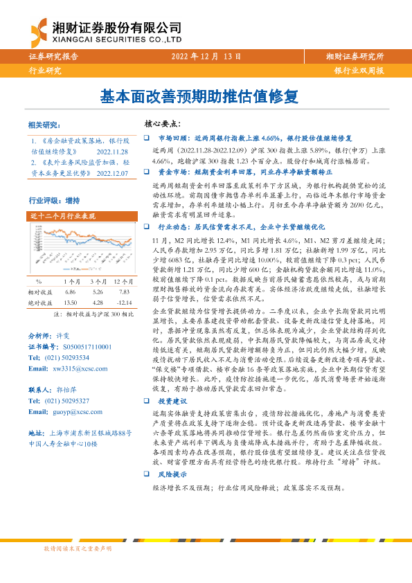 【湘财证券】【20221213】银行业双周报:基本面改善预期助推估值修复-11页