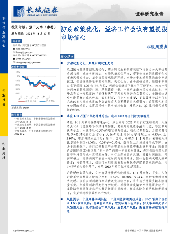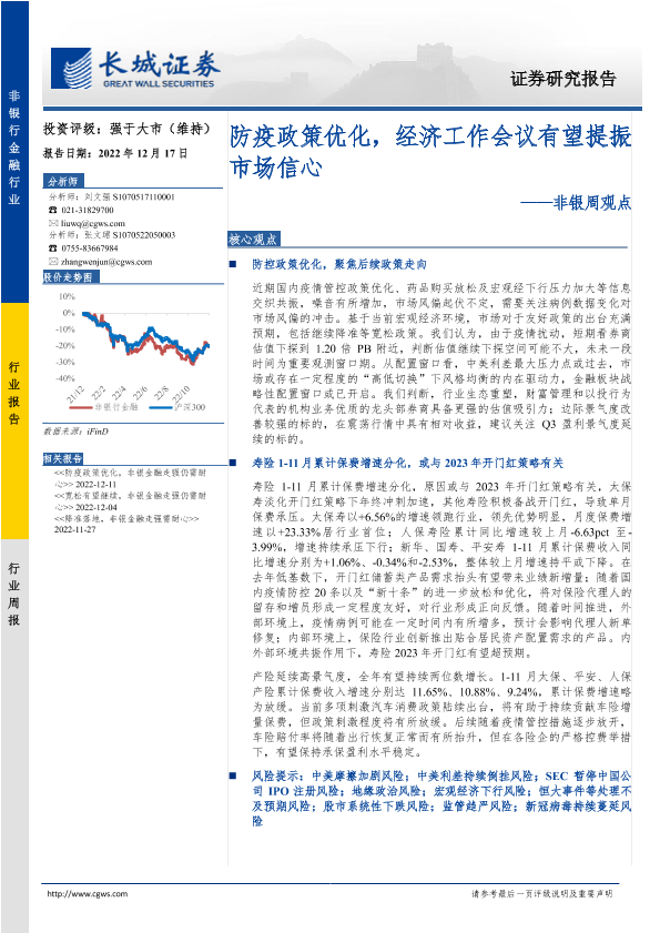 【长城证券】【20221217】非银周观点:防疫政策优化,经济工作会议有望提振市场信心-33页