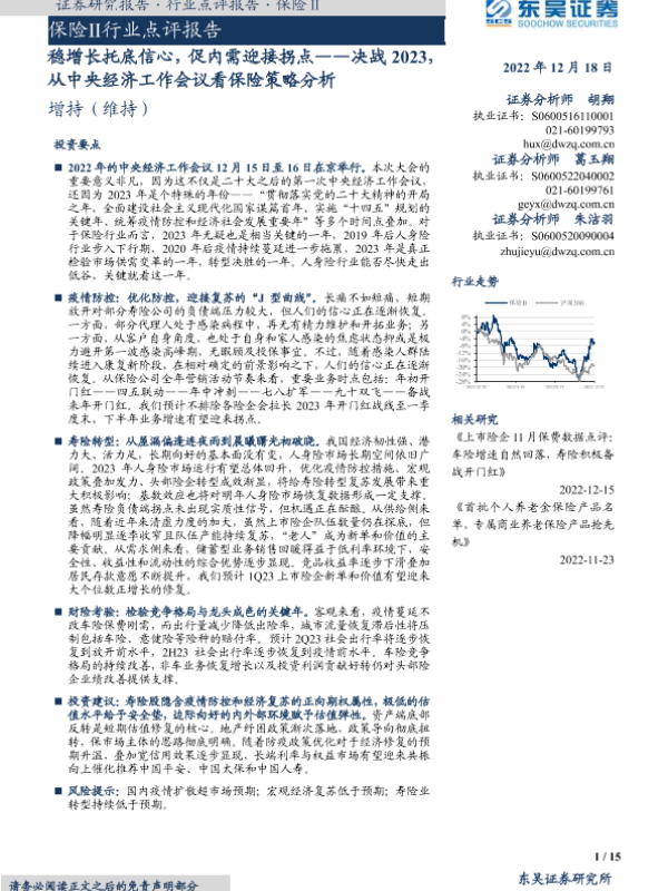 【东吴证券】【20221218】保险Ⅱ行业点评报告:决战2023,从中央经济工作会议看保险策略分析-15页