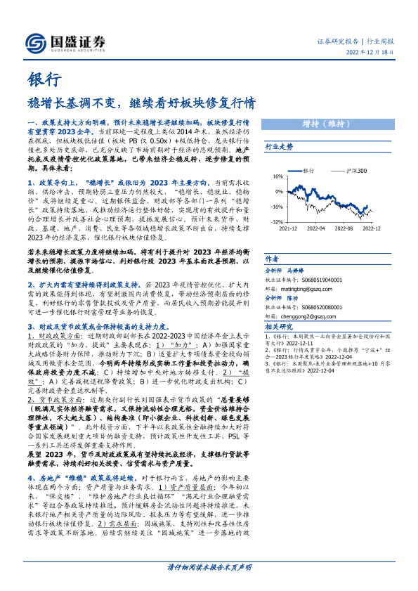 【国盛证券】【20221218】银行行业周报:稳增长基调不变,继续看好板块修复行情-14页