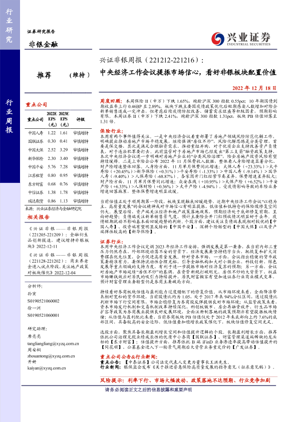 【兴业证券】【20221218】中央经济工作会议提振市场信心,看好非银板块配置价值-16页