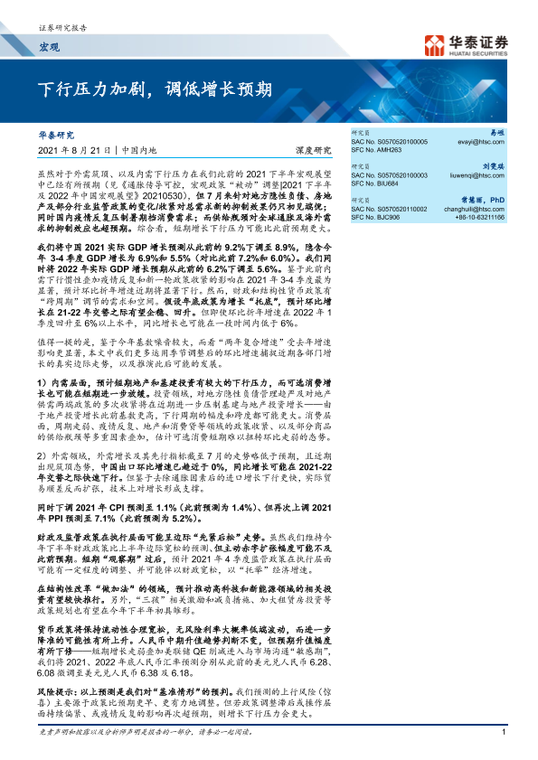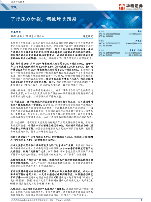 【华泰证券】【20210821】下行压力加剧,调低增长预期-31页