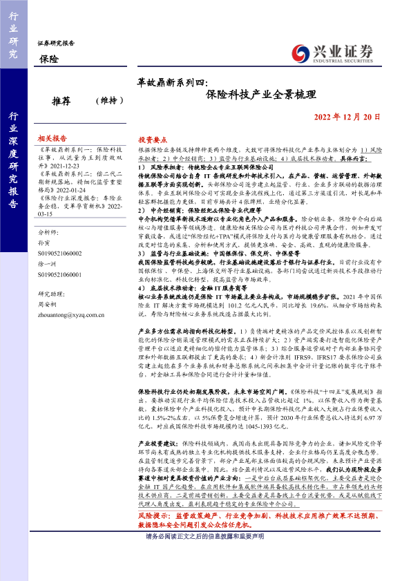 【兴业证券】【20221220】革故鼎新系列四:保险科技产业全景梳理-43页