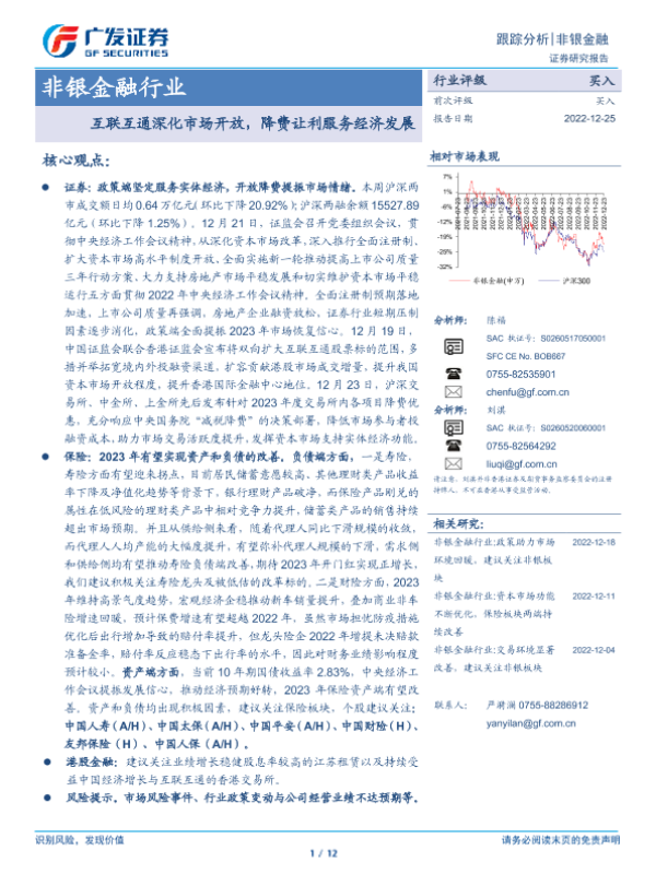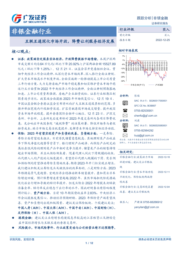 【广发证券】【20221225】非银金融行业跟踪分析:互联互通深化市场开放,降费让利服务经济发展-12页