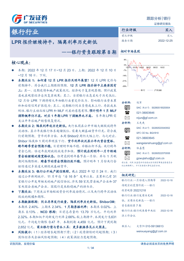 【广发证券】【20221225】银行资负跟踪第8期:LPR报价继续持平,隔离利率历史新低-34页