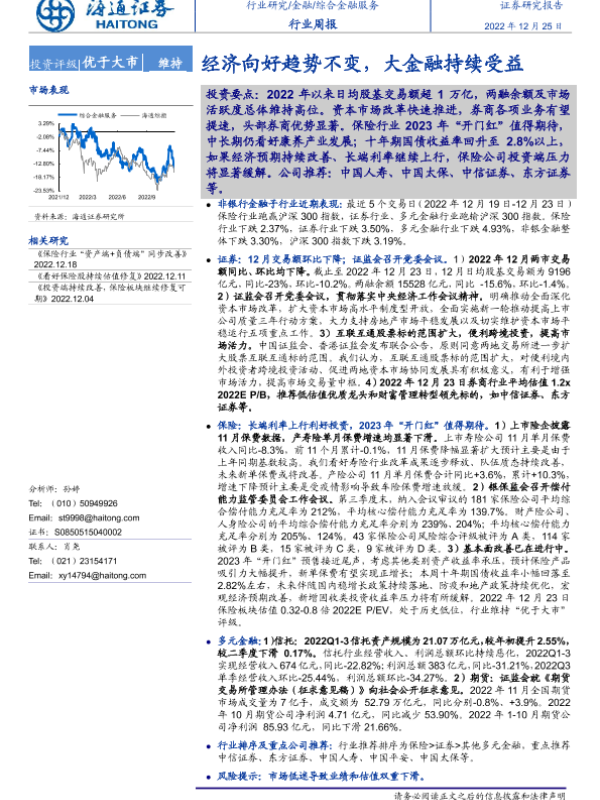 【海通证券】【20221225】综合金融服务行业周报:经济向好趋势不变,大金融持续受益-10页