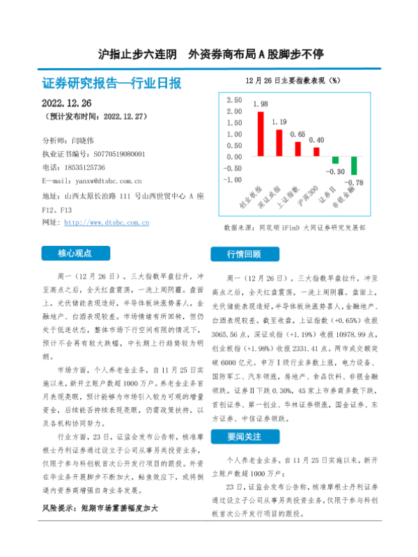 【大同证券】【20221226】沪指止步六连阴 外资券商布局A股脚步不停-10页