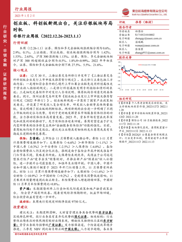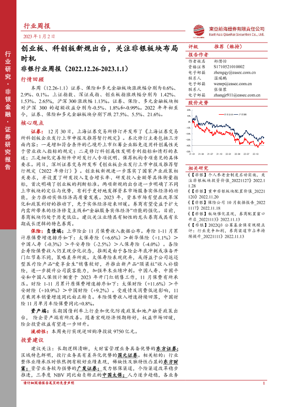 【东亚前海证券】【20230102】非银行业周报:创业板、科创板新规出台,关注非银板块布局时机-10页