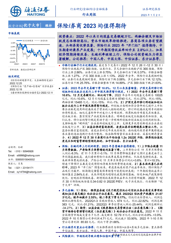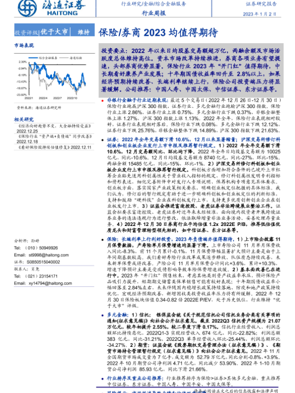 【海通证券】【20230102】综合金融服务行业周报:保险 券商2023均值得期待-12页
