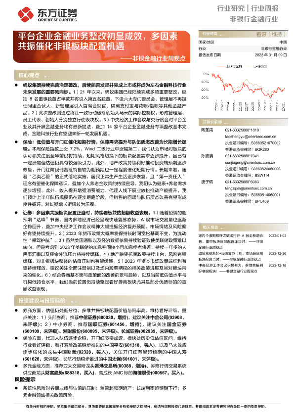【东方证券】【20230109】非银金融行业周观点:平台企业金融业务整改初显成效,多因素共振催化非银板块配置机遇-13页