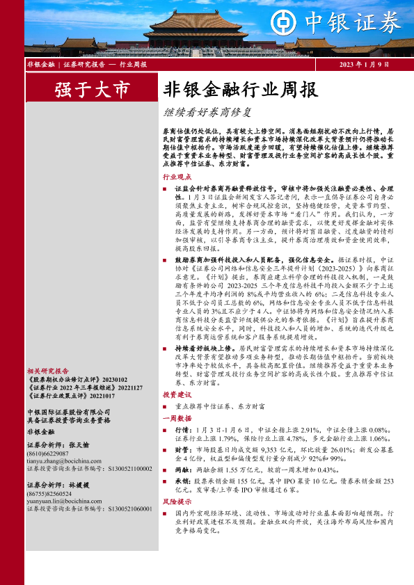 【中银证券】【20230109】非银金融行业周报:继续看好券商修复-11页