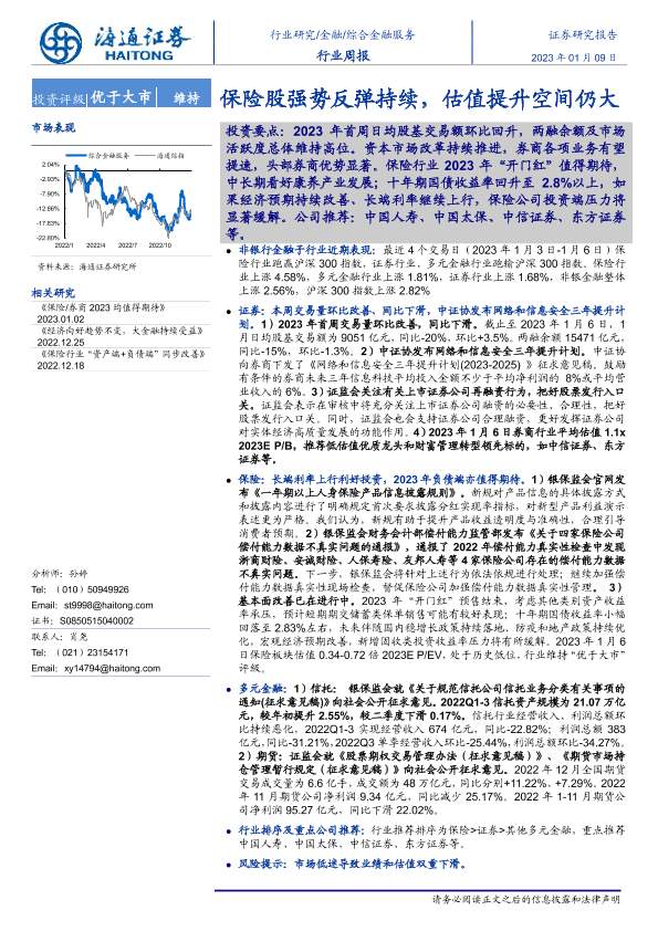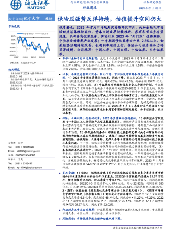 【海通证券】【20230109】综合金融服务行业周报:保险股强势反弹持续,估值提升空间仍大-11页