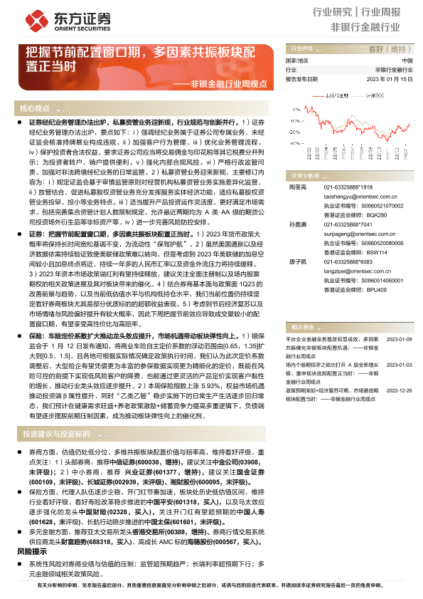 【东方证券】【20230115】非银金融行业周观点:把握节前配置窗口期,多因素共振板块配置正当时-13页