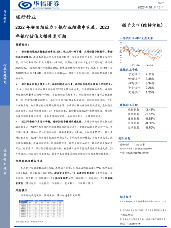 【华福证券】【20230115】2022年超预期压力下银行业绩稳中有进,2023年银行估值大幅修复可期-18页