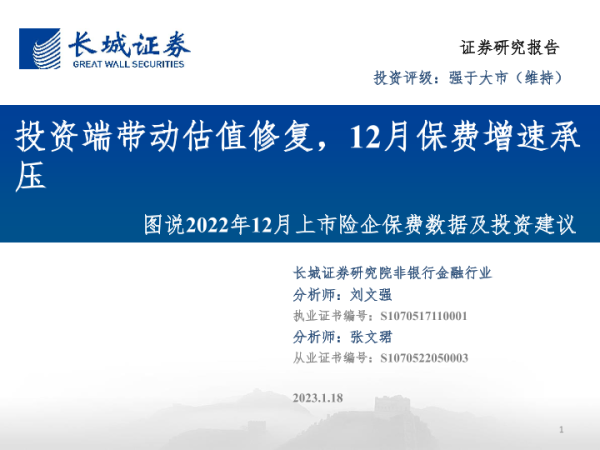 【长城证券】【20230118】图说2022年12月上市险企保费数据及投资建议-26页