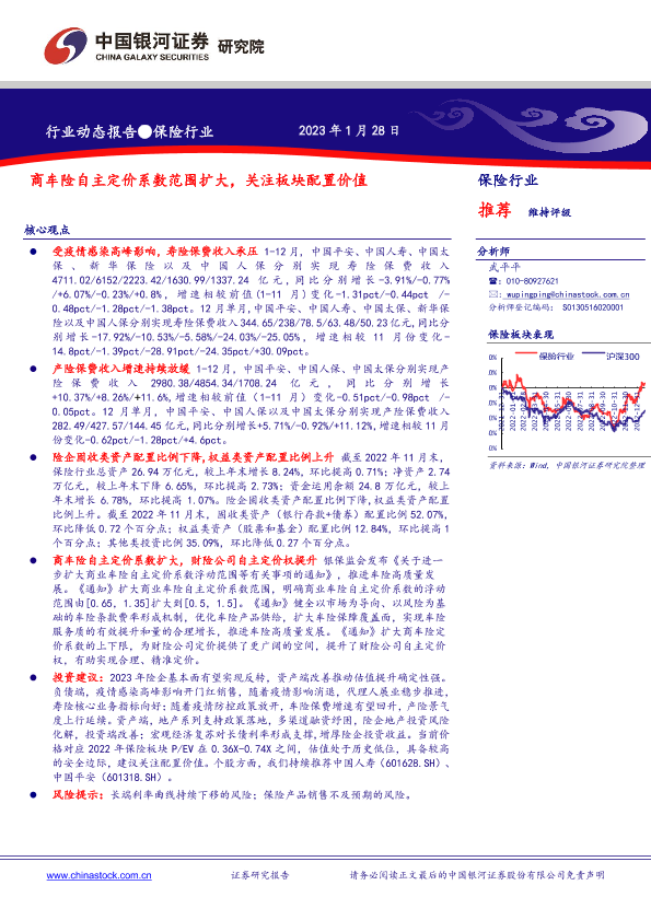【银河证券】【20230128】商车险自主定价系数范围扩大,关注板块配置价值-18页
