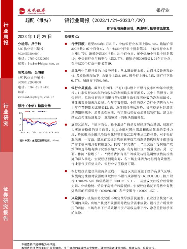 【东莞证券】【20230129】银行业周报:春节假期消费回暖,关注银行板块估值修复-11页