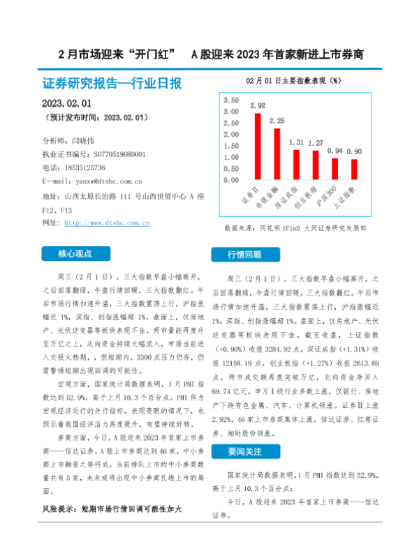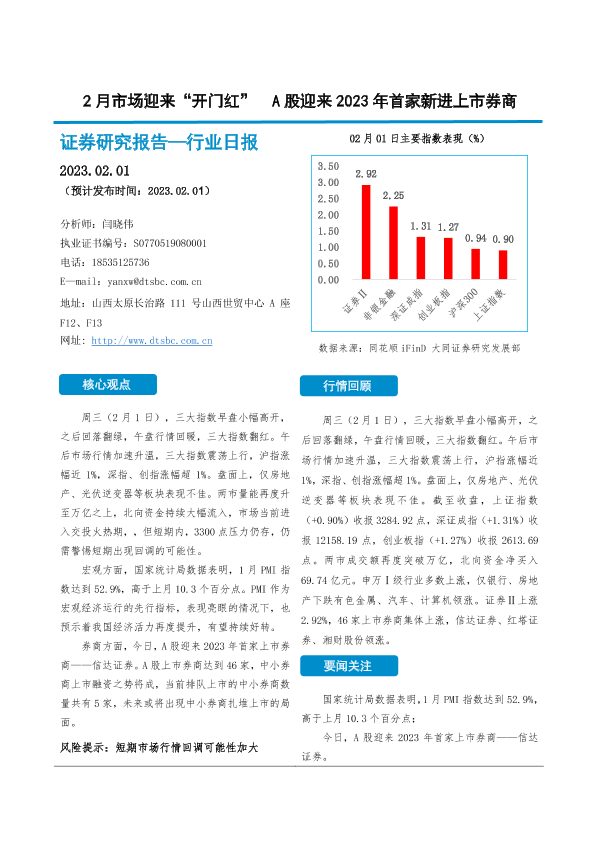 【大同证券】【20230201】2月市场迎来“开门红” A股迎来2023年首家新进上市券商-10页