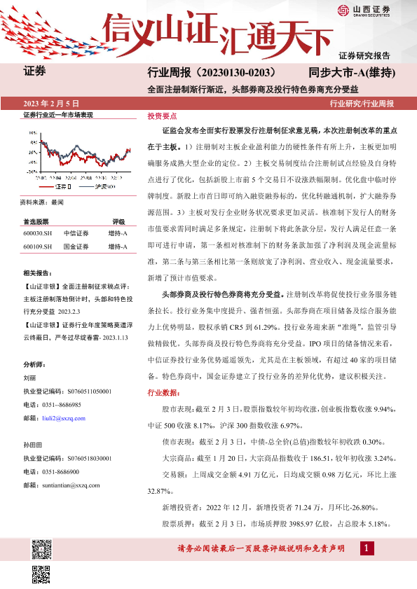 【山西证券】【20230205】证券行业周报:全面注册制渐行渐近,头部券商及投行特色券商充分受益-11页