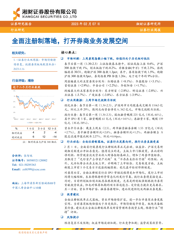 【湘财证券】【20230207】证券行业周报:全面注册制落地,打开券商业务发展空间-11页
