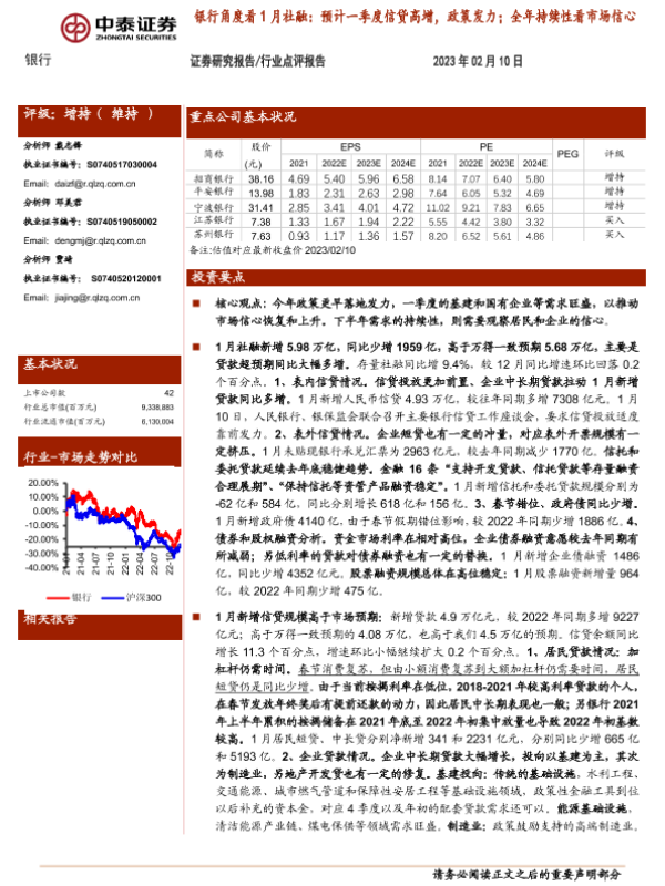 【中泰证券】【20230210】银行角度看1月社融:预计一季度信贷高增,政策发力;全年持续性看市场信心-14页