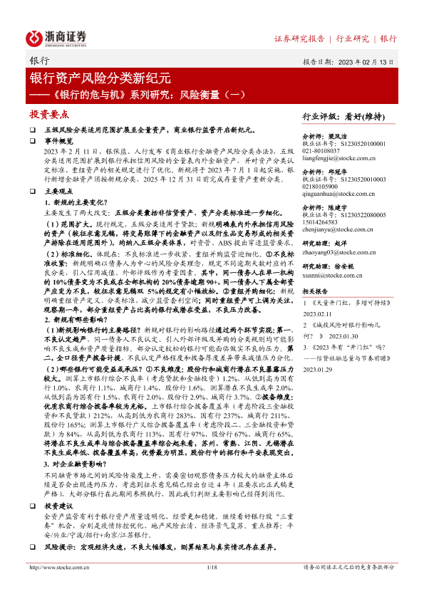 【浙商证券】【20230213】银行的危与机系列研究:风险衡量(一):银行资产风险分类新纪元-18页