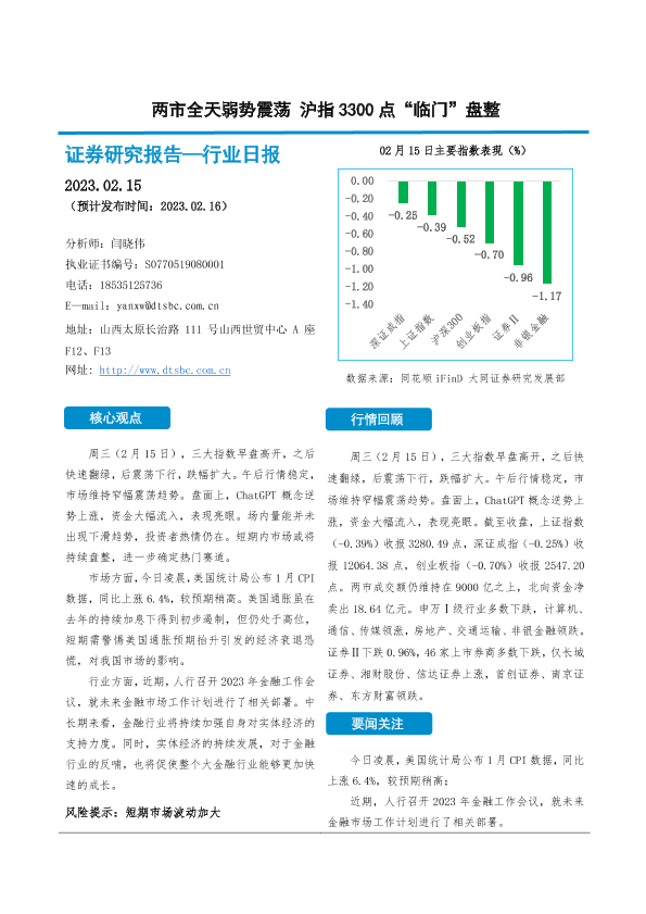 【大同证券】【20230215】两市全天弱势震荡 沪指3300点“临门”盘整-10页
