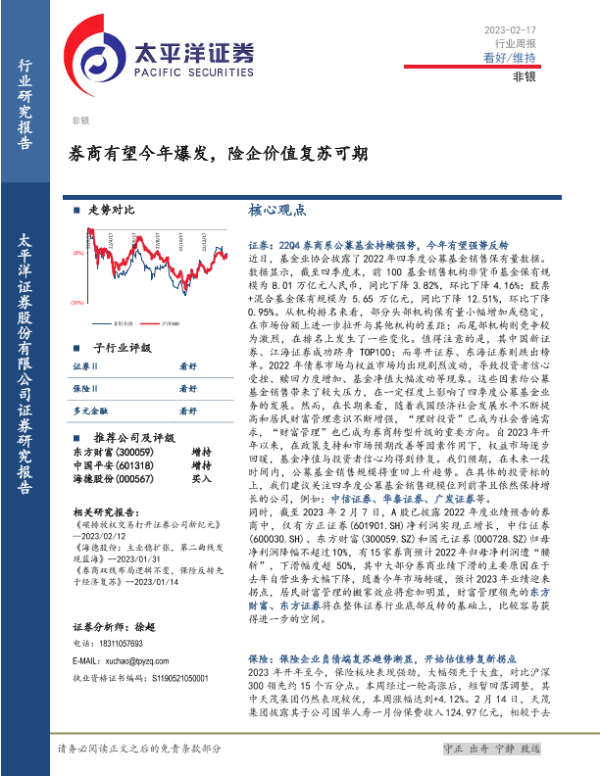 【太平洋证券】【20230217】非银行业周报:券商有望今年爆发,险企价值复苏可期-14页