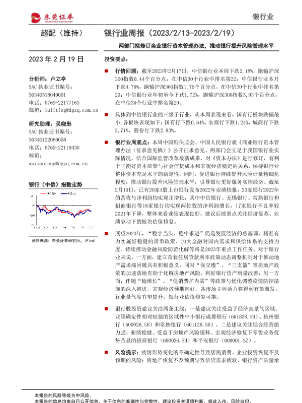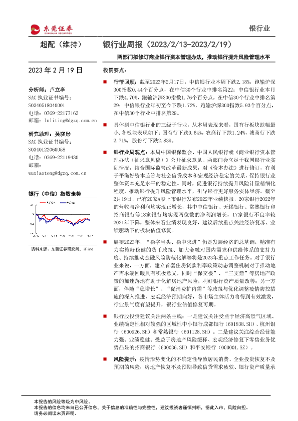【东莞证券】【20230219】银行业周报:两部门拟修订商业银行资本管理办法,推动银行提升风险管理水平-13页