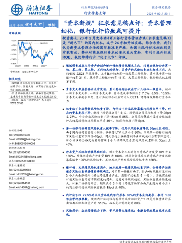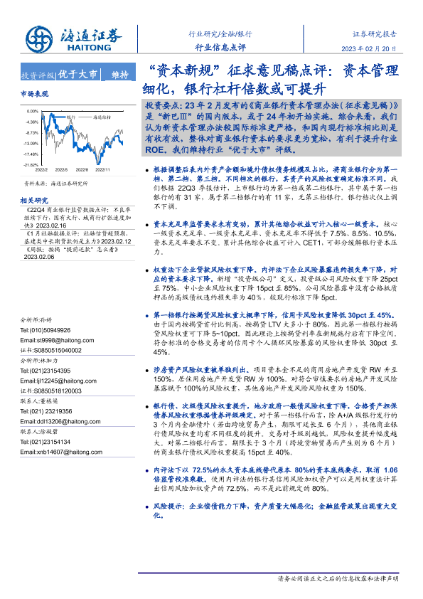 【海通证券】【20230220】银行‘资本新规’征求意见稿点评:资本管理细化,银行杠杆倍数或可提升-11页