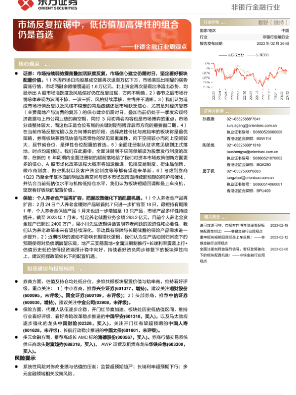 【东方证券】【20230226】非银金融行业周观点:市场反复拉锯中,低估值加高弹性的组合仍是首选-13页