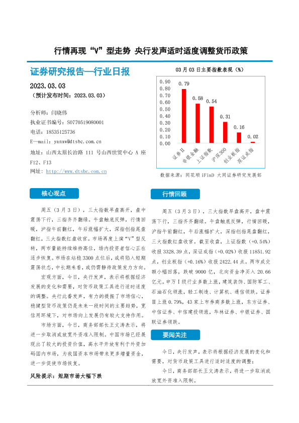 【大同证券】【20230303】非银金融行业日报:行情再现“V”型走势 央行发声适时适度调整货币政策-10页