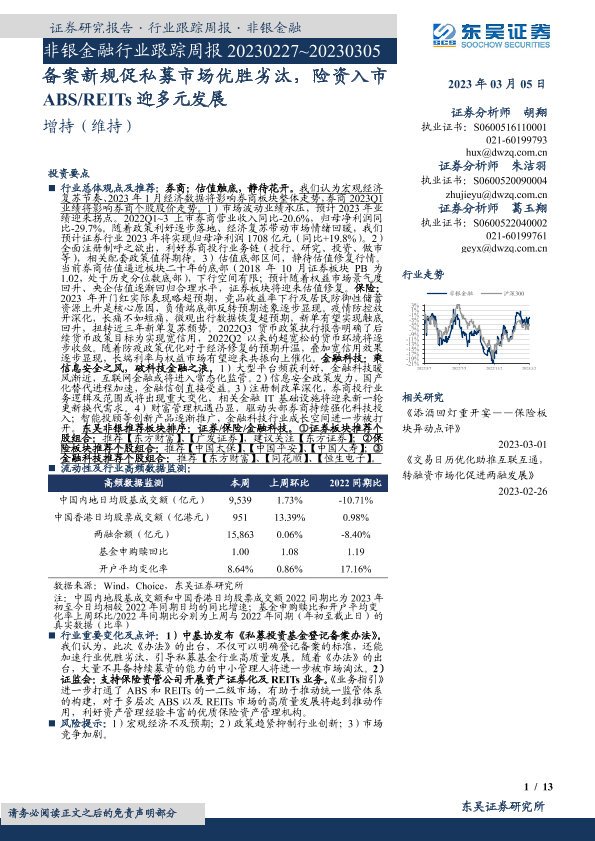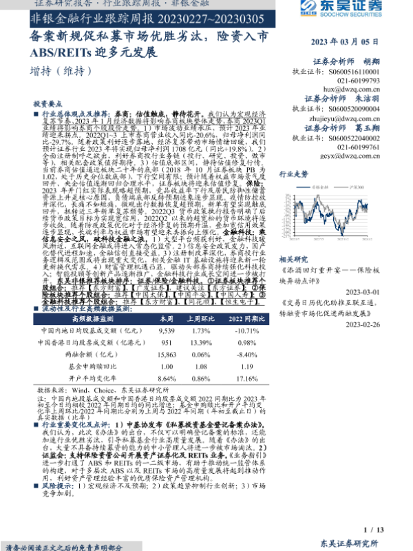 【东吴证券】【20230305】非银金融行业跟踪周报:备案新规促私募市场优胜劣汰,险资入市ABS REITs迎多元发展-13页