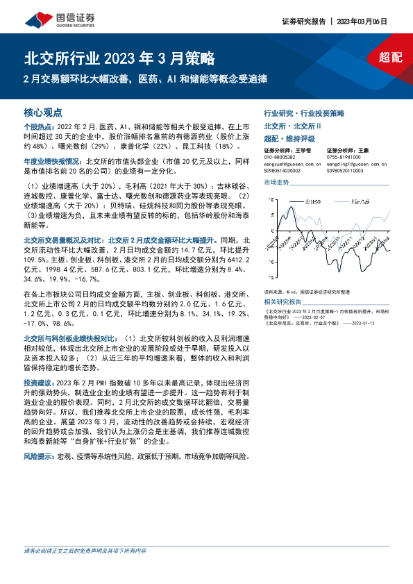 【国信证券】【20230306】北交所行业2023年3月策略:2月交易额环比大幅改善,医药、AI和储能等概念受追捧-13页