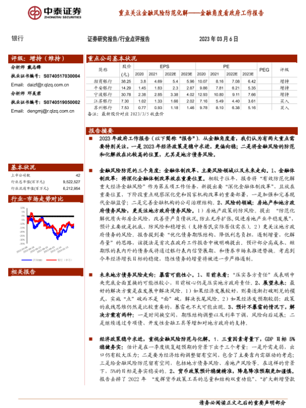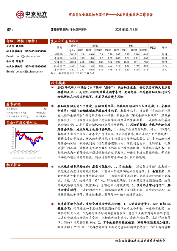 地方债务 房地产政策 政府工作报告 金融风险 银行股投资