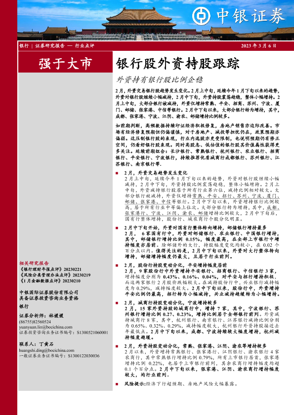 【中银证券】【20230306】银行股外资持股跟踪:外资持有银行股比例企稳-15页