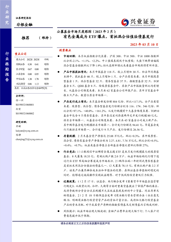 【兴业证券】【20230310】公募基金市场月度跟踪(2023年2月):有色金属成为ETF爆点,首批混合估值法债基发行-25页