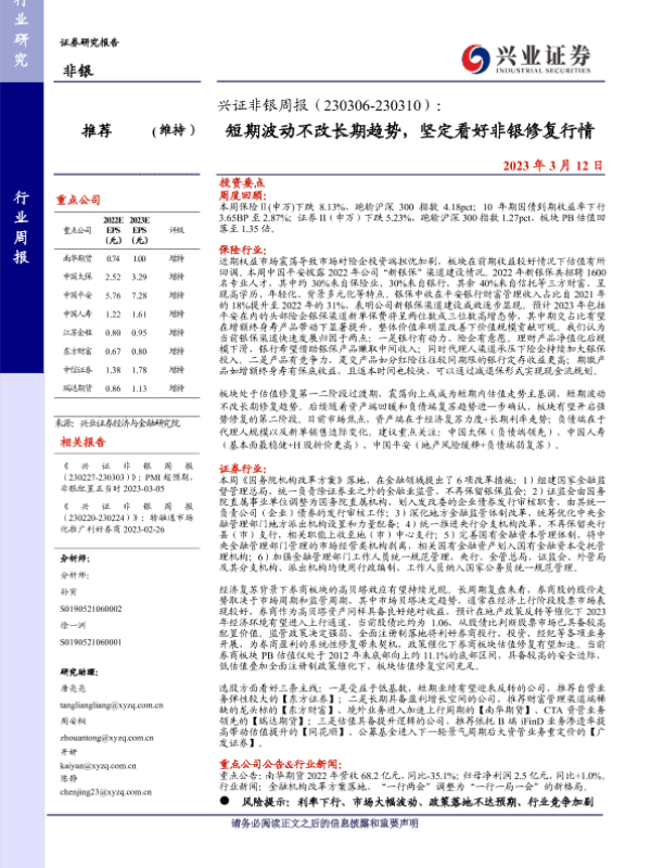 【兴业证券】【20230312】兴证非银周报:短期波动不改长期趋势,坚定看好非银修复行情-16页