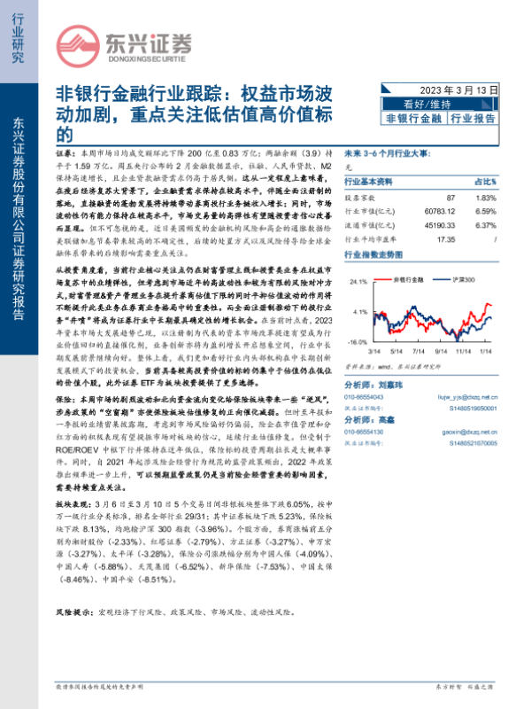 【东兴证券】【20230313】非银行金融行业跟踪:权益市场波动加剧,重点关注低估值高价值标的-11页
