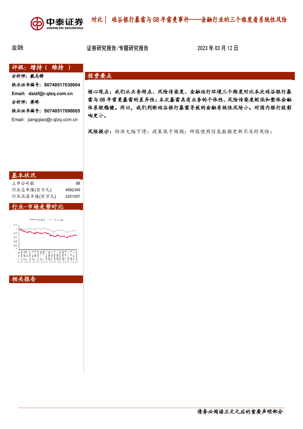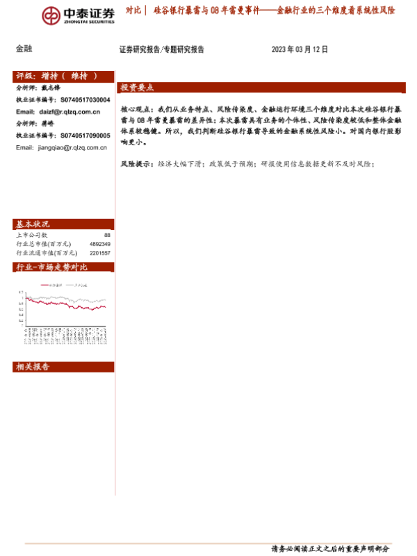 【中泰证券】【20230313】金融行业的三个维度看系统性风险:对比硅谷银行暴雷与08年雷曼事件-12页