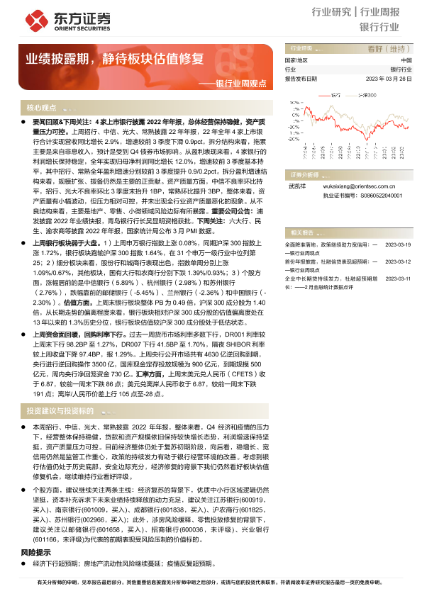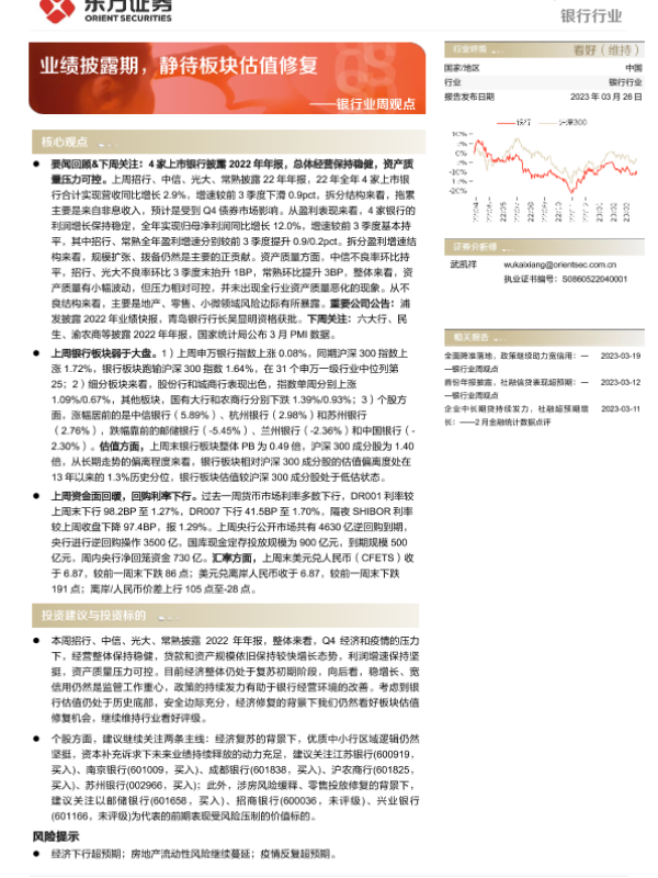 【东方证券】【20230326】银行业周观点:业绩披露期,静待板块估值修复-13页