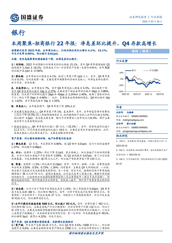 【国盛证券】【20230326】招商银行22年报:净息差环比提升,Q4存款高增长-12页