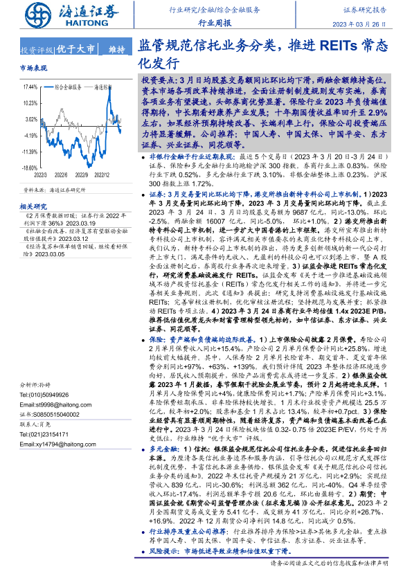 【海通证券】【20230326】综合金融服务行业周报:监管规范信托业务分类,推进REITs常态化发行-11页