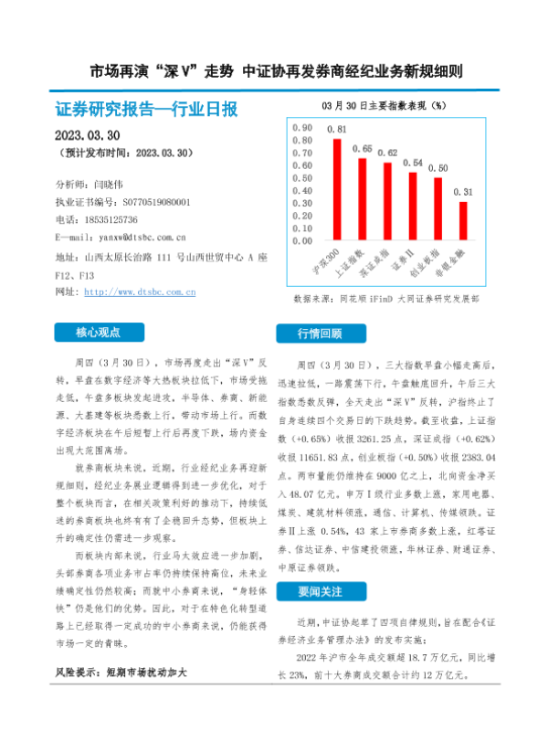 【大同证券】【20230330】市场再演“深 V”走势 中证协再发券商经纪业务新规细则-11页