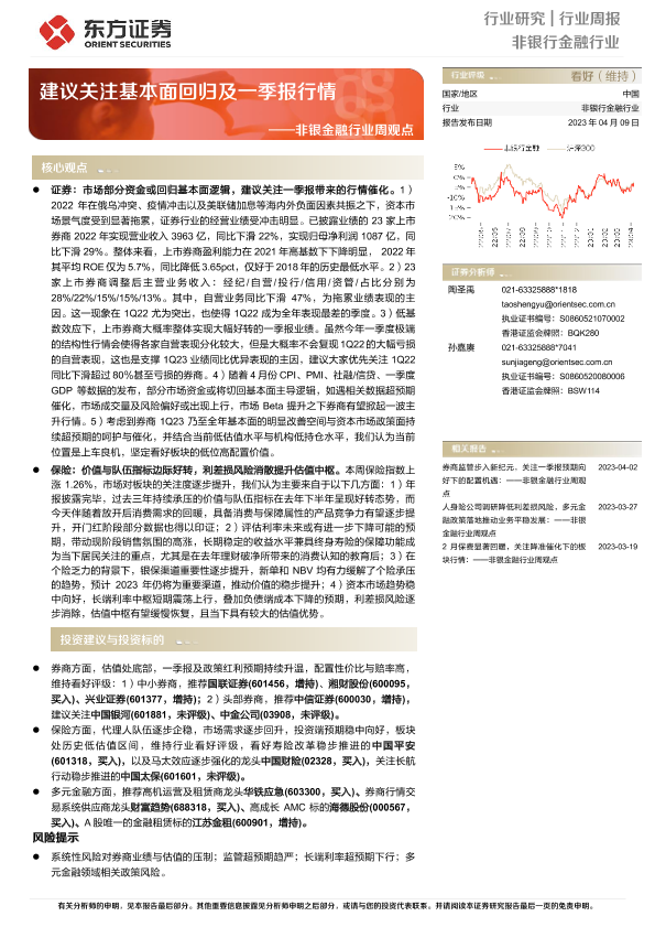 【东方证券】【20230409】非银金融行业周观点:建议关注基本面回归及一季报行情-13页